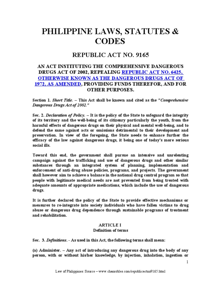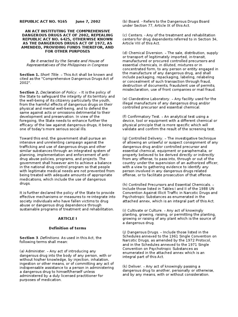 * the comprehensive dangerous drug act of 2002, repealing ra # 6425, otherwise known as the dangerous drugs act of 1972, as amended, providing funds therefore, and for other purposes. Containing drugs to which this act applies, be sentenced to imprisonment without the option of a fine or to pay a. Dangerous drugs not to be tampered with. 9165 is a consolidation of senate bill no. The former was the view held by the then assistant under secretary of state, malcolm delevingne.